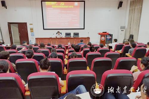 党总支书记盛智颖传达了《关于湖南科技大学等高校3起科研经费管理使用违纪典型案例的通报》《关于加强消防安全重点部位管理的通知》《湖南农业大学领导干部深入基层联系学生工作实施方案》等文件,结合会上学习的文件要求和学院工作实际就有关问题提出了要求,并强调了端午节师生安全稳定工作。