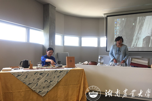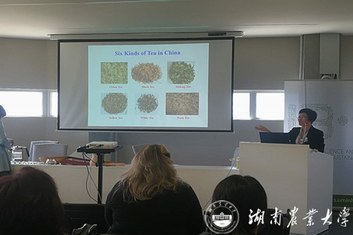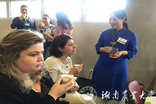 6月20日,黄建安教授一行来到米尼奥大学(University of Minho),出席了“新时代的中医药”和中医药研究研讨会,分享了主题报告“Dark Tea and Human Health”(黑茶与健康)“Dark tea Culture: Mysterious Tea on the Ancient Silk Road”(黑茶文化:古丝绸之路上的神秘之茶),展示了湘益茯茶系列产品——“一品茯”“特茯”“益生源”,并现场进行了茯砖茶的冲泡与品饮文化介绍,与会嘉宾对这种长满“金花”的神秘黑茶产生了浓厚兴趣。