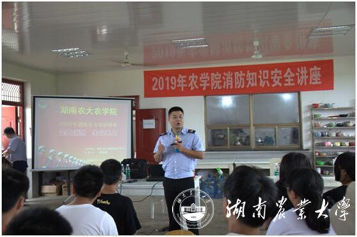 本网讯(农学院 张雨薇)我校浏阳基地远离校本部,树立同学们的消防安全意识,显得格外重要。6月24日农学院特邀请湖南全民消防知识宣传中心宣教部教官刘双泉赴浏阳实习基地举办消防安全知识培训讲座。农学院副院长易镇邪及浏阳基地管理人员、实习带队老师和实习学生共计200多人聆听了此次培训讲座。培训讲座由农学院党委副书记祖智波主持。