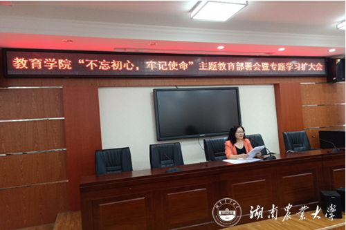 【牢记使命践初心】教育学院召开“不忘初心、牢记使命”主题教育部署会暨中心组学习(扩大)会(图)