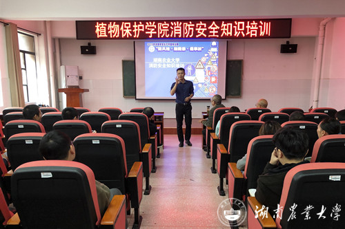 本网讯(植保学院 周麟)为进一步加强消防安全教育工作,增强师生消防安全意识,助力打造安全校园,10月28日,植物保护学院在第十六教学楼529室举行消防安全知识培训。长沙市消防支队教官庄君明应邀为植物保护学院师生授课。