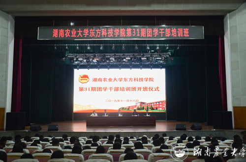 本网讯(东方科技学院 周笑妮 张倩阳)为深入学习贯彻习近平新时代中国特色社会主义思想,积极探索新时期团学干部教育培养新途径、新形式、新特点,努力提升团学干部思想政治素质和工作能力,增强团学组织的号召力、凝聚力和战斗力,推动学院团学工作再上新台阶, 11月16日,东方科技学院第31期高级团学干部培训班在大礼堂举行。湖南工业大学生命科学与化学学院党委书记杨振邦、东方科技学院党委书记史云峰、东方科技学院党委副书记朱杰辉出席并作专题培训。学院各级团学干部共700余人参加培训。