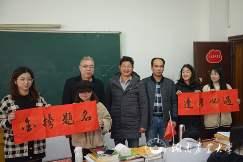 李觅路代表学院对考研学生表示亲切慰问,仔细询问了考研学生备考情况,他希望同学们在仅剩的二十多天的时间里,树立坚持到底的信心,保持积极的备考心态,合理安排作息时间,做到劳逸结合,高效安排复习计划,为自己的考研之路画上圆满的句号,并预祝考研学生取得好成绩。随后学院领导现场给考研学生赠送了慰问品。