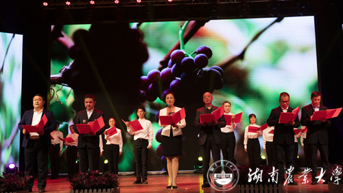 本网讯(园艺学院 李鑫 黄亚倩)12月25日晚,园艺学院2019年“圆梦青春,再续华章”文艺晚会在学校大礼堂举行。学校校长、中国工程院院士邹学校,原湖南省科技厅巡视员杨治平、湖南第一师范学院党委副书记刘志敏,校党委委员贺建华,学校相关职能部门负责人出席,学院部分退休教职工、校友、全体师生等观看了晚会。