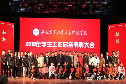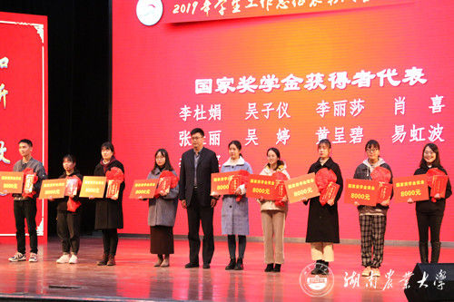 学院领导对国家奖学金获得者、校先进班集体、校三好学生标兵代表、就业工作先进单位以及2019年学生工作目标考核先进单位等集体和个人颁奖。