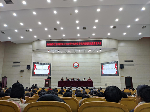 本网讯 (食品科学技术学院 杨斯琪)12月24日,食品科学技术学院在图书馆大成厅召开2019-2020学年秋季学期学风建设推进暨表彰大会。食品科学技术学院党委书记王永昌、党委副书记林曙出席,学院学工组全体辅导员,2017、2018级学生代表、2019级全体学生参加会议。