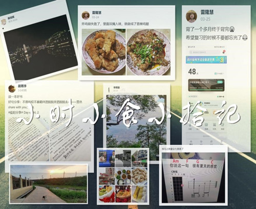 学院组织学生通过番茄Todo软件自习室规划日常学习、以“相互提问、相互鼓舞、相互激励、相互督促”为原则,进行线上讨论交流与学习比拼,激发学生既竞争又合作的共同学习意识,促进学生积极、自主、有效地学习。化材学院团委建立“小花菜疫起学” QQ群,定期发布学习网站链接、学习视频资源合集、趣味防疫视频、专业书籍、专业学习公众号等,拓宽学生知识面,从多方面引导学院学生求知探索,具有十足的趣味性与丰富性。学生还可以通过钉钉软件“小时小食小拾记”圈子,以图片加感受的方式,分享自己日常生活中的所感所知所得,并在同伴的日常里获得灵感与启迪。“小时小食小拾记”,以“小食篇”共享美味,“小时篇”共度好光景,“小拾篇”共同感受学习与生活实践的乐趣。