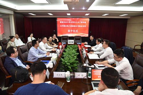 本网讯(水利与土木工程学院 陈音竹)4月27日下午,水利与土木工程学院院长王辉、党委书记胡德勇带领学院教工第一党支部党员和水利工程系老师前往中国水利水电第八工程局有限公司基础公司交流学习,双方就水利行业发展、加强校企合作等进行了深入交流,同时签订了《毕业生就业基地合作意向书》。