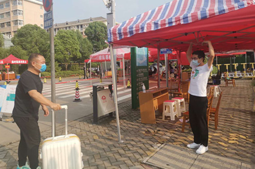 本网讯(马克思主义学院 李苗 罗杰)5月20日是我校第一批学生返校复学报到的前一天,也是学生申请回校取私人物品的高峰日,由马克思主义学院学工组老师组成的特殊志愿服务车队早早守候在北校门口,帮着学生们托运行李。在这个有爱的日子里,老师们的志愿行动,引起学生们纷纷点赞,互相隔空比心送上彼此的祝福。