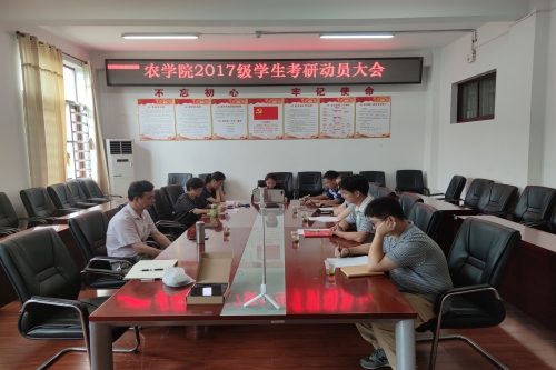 本网讯(农学院 李铁玉)7月7日上午,农学院召开“青春正当时,奋进当有为”2017级学生线上考研动员大会。学院院长唐文帮、党委副书记刘敏,各学位点负责人参加会议。