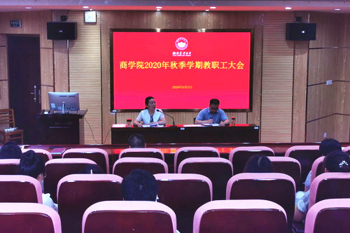 本网讯(商学院 石勇) 9月3日,商学院在10教北102组织召开2020年秋季学期教职工大会。学院党委书记李阿利主持会议,学院全体院领导和教职工参加会议。