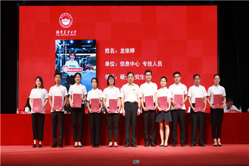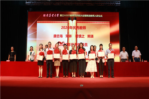9月10日上午,学校第三十六个教师节庆祝大会暨新进教师入职仪式在大礼堂举行。全体校领导为2020年度优秀教育工作者、2020年度优秀辅导员、2020年度优秀教师、第一届青年教师标兵获得者颁奖,代表学校党委、行政向全校广大教师和教育工作者致以节日问候和崇高敬意,勉励全体教师围绕立德树人、强农兴农,努力追求一流农业大学目标,在全省农业现代化中发挥更大作用,为建设富饶美丽幸福新湖南作出新贡献。
