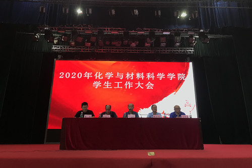 本网讯(化材学院 周文)9月11日,化学与材料科学学院在大礼堂召开2020年学生工作大会。全体院领导、系主任、班主任、研究生导师代表、行政人员、辅导员以及学院全体本科生和研究生参加会议。会议由学院党委副书记裴虎主持。