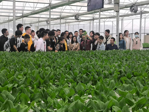 本网讯 (园艺学院 王军伟)“南瓜怎么可以吊着生长?”“菜怎么可以在水中生长?”9月30日,园艺学院刘明月教授、夏志兰教授、黄科教授和王军伟博士带领设施农业科学与工程专业2020级26位新生,前往益阳现代农业示范园和智慧农业第一村开展新生入学专业教育活动,通过实地参观学习现代农业的发展现状和经营模式,在加深新生对专业了解的同时,增加其投身于我国农业农村现代化建设的认同感。
