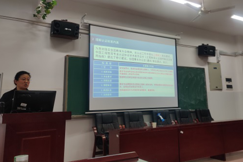 刘静波从把握认证核心理念,理解认证标准内涵,制订合理培养方案,持续改进专业建设,写好申请书和自评报告,做好进校考察准备工作等6个方面指导学院老师进行专业认证。她指出,进行认证要把握核以学生为中心,构建以结果为导向的人才培养体系,并进行持续改进。要面向全体学生,针对实际产出,构建内外循环。要根据培养目标,毕业要求,制定合理培养方案。她提醒到,认证不代表“一劳永逸”,要以持续改进为保障,建立教学过程质量监制机制,定期开展课程体系设置和课程质量评价,成立毕业要求达成情况评价机制,定期开展毕业要求达成情况评价。刘静波还以其他院校及自己所授课程为例,指出加强青年教师队伍建设,要建立“边学边评”的机制。