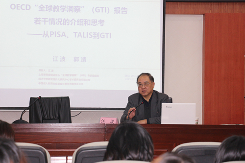 本网讯(教育学院 原晓琪 万天赐)12月10日玩,上海市师资培训中心“全球教学洞察”专家组组长、同济大学教育现代化研究中心学术委员执行副主任、同济大学原副校长江波教授应邀来校为教育学院师生作题为《基础教育和国际交流政策与形式》的学术报告,教育学院院长郭丽君主持。