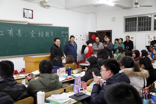 学院领导为考研学生送上“考研加油包”