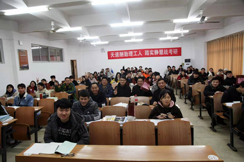 考研学生与学院领导、老师在考研教室内合影