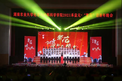 本网讯(化学与材料科学学院 周文)1月5日晚,化学与材料科学学院举行2021年“繁花”迎新年晚会。校党委委员、副校长张立,党委学生工作部、创新创业教育中心等部门负责人,学院全体院领导、教职工、本科生、研究生观看晚会。