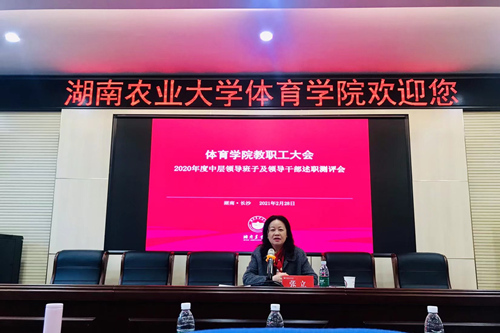本网讯(体育学院 廖胜文) 2月28日下午,体育学院在10教南137教室召开了2020年度学院中层领导班子及领导干部述职测评大会,副校长张立出席并主持会议,学院全体教职工参加。