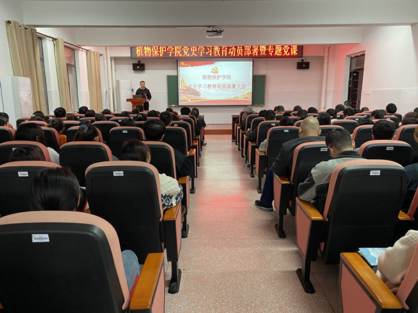 本网讯(植保学院 刘燕娟)3月18日,植保学院在16教529多媒体教室召开党史学习教育动员会暨专题党课。学院全体党员参加会议,会议由党委书记张爱龙主持。