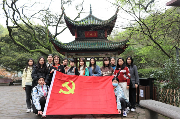 活动中,党员们首先参观了新民学会旧址。毛泽东、蔡和森、萧子升等十几名进步青年曾在此讨论革命,成立了新民学会,发出了湖湘青年的革命之声。青年党员们游览之后备受鼓舞。接着,全体党员来到了东方红广场。主席身穿风衣,双手背后,深情地凝望着这片他年轻时熟悉的土地,让大家更加深刻理解了《沁园春·长沙》中“独立寒秋”和“忆往昔峥嵘岁月稠”的意境。下一站,全体党员参观了岳麓书院和爱晚亭。青年毛泽东寓居岳麓书院半学斋期间,创办了《湘江评论》,并时常携挚友在爱晚亭“指点江山、激扬文字”,纵谈时局,探求真理。回顾历史,我们感概伟人“问苍茫大地,谁主沉浮?”的凌云壮志;再看今朝,我们牢记总书记“不负时代重托,不负青春韶华”的亲切嘱托。