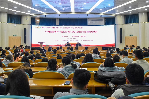 刘新春以《中国共产党百年历程的力量源泉》为题,用党的诞生开天辟地、反帝反封顶天立地、三大改造改天换地、建设探索战天斗地、改革开放翻天覆地、全面小康欢天喜地、中美对决惊天动地,即“七天七地”这一视角向大家展现中国共产党光辉灿烂、苦难辉煌的历史。提出中国共产党赢得了马克思无产阶级革命理论的指引、得到了列宁无产阶级政党学说的指导、担当了中华民族生死存亡——伟大复兴的使命、确立了全心全意为人民服务的立党宗旨、推动产生了马克思主义中国化系列成果、参鉴了世界社会主义运动的经验教训、焕发了批评与自我批评的自我革命精神这七大力量源泉。用丰富的案例、生动的语言为大家上了一堂深刻的党史教育课。