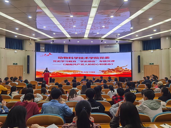 本网讯(动科学院 李紫丽)4月19日晚,湖南党史陈列馆红色故事宣讲团在生科楼国际会议厅为动科学院全体党员上了一堂题为《湖南共产党人的初心和使命》专题微党课。