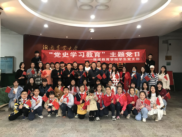 本网讯(学工办 田建湘 阳番 喻艳)为深入开展党史学习教育,创新学习方式,彰显新时代大学生的使命担当,让少先队员学党史、担使命,扣好人生第一粒纽扣,4月16日下午,继续教育学院学生党支部全体党员携手子弟小学的学生走进校史馆,聆听党史、校史故事,感受中国共产党建党、湖南农业大学建校的伟大成就。