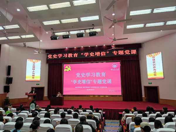 本网讯(经济学院 肖潇 李进城)4月22日下午,经济学院党委、教育学院党委、纪检监察处党支部、审计处党支部在修业学堂联合开展党史学习教育“学史增信”专题学习。湖南省社科院历史文化研究所所长李斌研究员以《从党的光辉历程中汲取前行力量》上专题党课,学校纪委书记凌生春主持,四单位全体教工党员、学生党员代表参加。