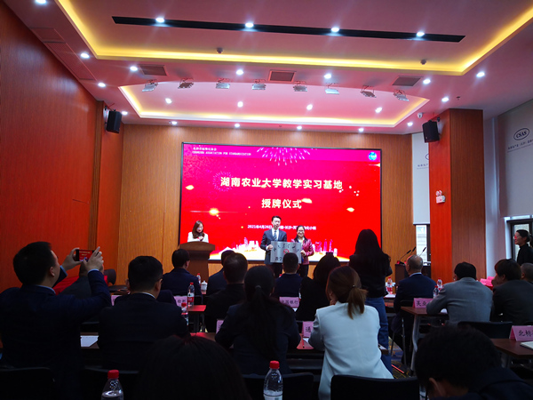 在隆平高科园,师生参加学校与芙蓉标准化小镇教学实习基地授牌仪式。芙蓉标准化小镇负责人、长沙市标准化协会会长田亚表示,希望依托企业行业优势,充分利用教学资源,建立校企深度合作,优势互补、共同发展、实现共赢。在随后召开的实习见面会上,企业人力资源部、宣传策划部以及培训教育部负责人分别介绍各自部门的工作内容及岗位要求,与实习学生现场互选。