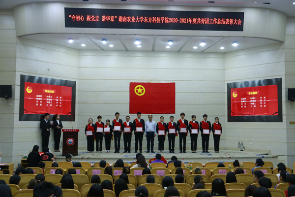 学院党委副书记朱杰辉宣读《湖南农业大学东方科技学院关于表彰2020~2021学年度共青团工作先进集体和优秀个人的决定》,他鼓励受表彰的集体和个人发挥先锋模范作用,再接再厉,再创佳绩,激励各级团组织和广大团员青年以他们为榜样,勤奋学习,努力工作,为自身成长成才和学校学院发展持续奋斗。
