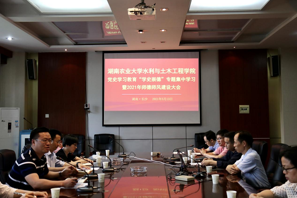 本网讯(水利与土木工程学院 翟光辉)5月13日下午,水利与土木工程学院党委组织全院教职工,前往徐特立纪念馆开展党史学习教育第三专题学习,并结合“学史崇德”开展师德师风建设专题讲座。