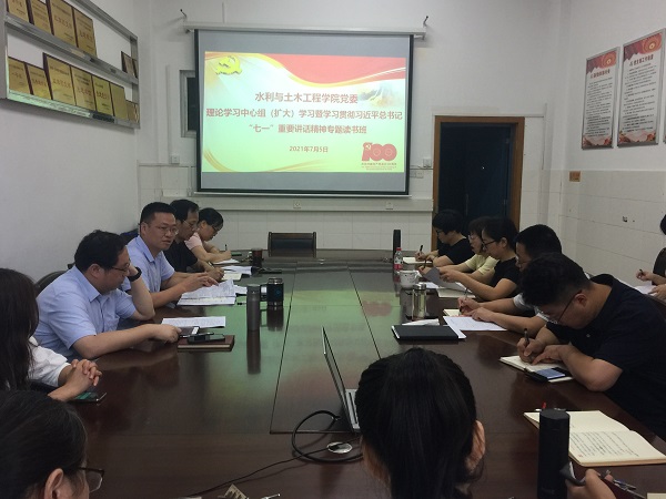 水利与土木工程学院召开党委理论学习中心组(扩大)学习暨学习贯彻习近平总书记在庆祝中国共产党成立100周年大会上的重要讲话精神专题学习研讨会(图)