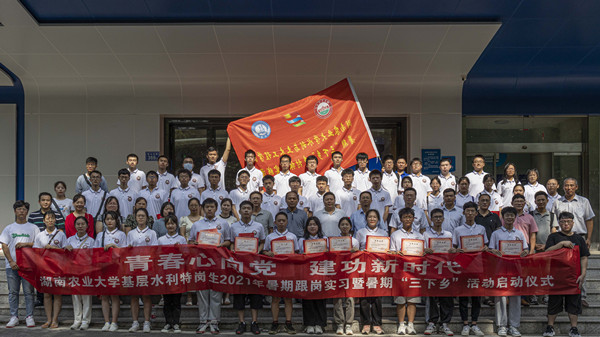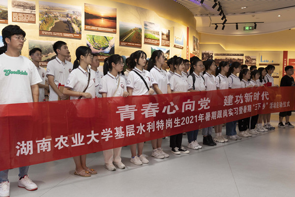 本网讯(水利与土木工程学院 翟光辉)7月16日上午,湖南农业大学首届基层水利特岗生2021年暑期跟岗实习暨“三下乡”活动启动仪式在湖南省水利科普展示中心举行。湖南省水利厅党组副书记、副厅长