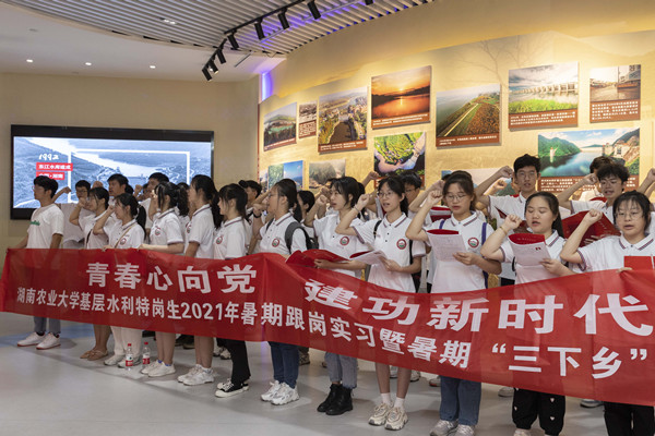 全体特岗生进行集体宣誓,将秉承“朴诚、奋勉、求实、创新”校训,传承“忠诚、干净、担当,科学、求实、创新”水利精神,铭记“兴水利、除水害”职责使命,厚植为民情怀,夯实专业基础,锤炼意志品格,提升综合素质,以“水利天下、工筑未来”的胸怀格局和使命担当,积极投身湖南基层水利事业,为建设水利现代化强国而努力奋斗!