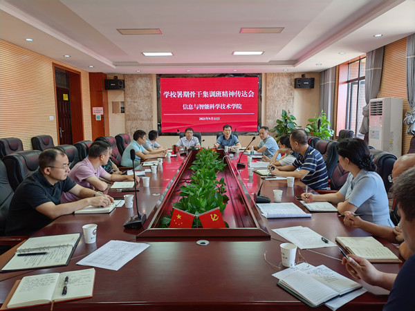 本网讯(信科学院 喻诚)9月11日上午,信科学院召开专题会议,传达学习学校暑期骨干集训班精神。学院党政班子成员、党委委员、系部科室负责人参加了会议。