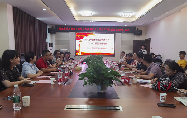 本网讯(教育学院 易丹)9月22日,教育学院邀请湖南省教科院高等教育研究所联合召开主题党日活动,省高教所所长段慧兰主讲,高教所支部全体党员,教育学院全体党委委员、支部书记及党员代表参加,教育学院党委书记周晓红主持。