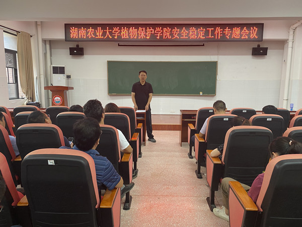本网讯 (植保学院 刘燕娟)9月27日上午,植物保护学院在16教529多媒体教室召开安全稳定工作专题会议。学院全体教职工参加会议,会议由学院党委书记张爱龙主持。