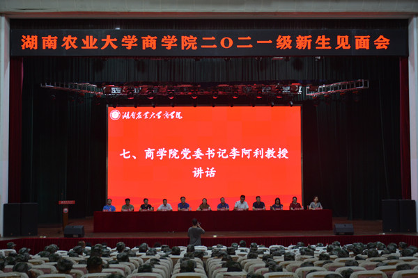 本网讯(商学院 侯罗旋 廖颖)9月27日中午,商学院2021级新生见面会在大礼堂举行。全体院领导、系主任、学位点领衔人、教师代表、全体辅导员、2021级研究生新生、本科生新生参加,大会由学院党委副书记丁彦主持。