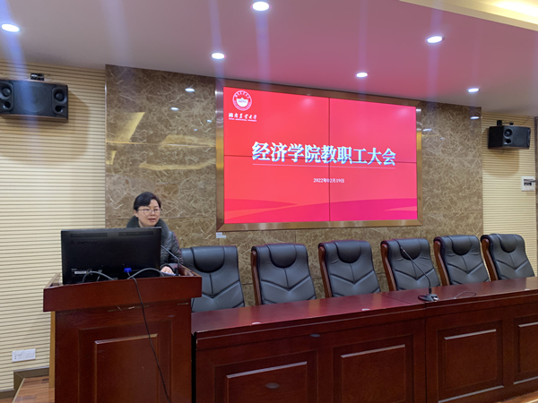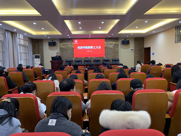本网讯(经济学院 王江)2月17日上午,经济学院在十教召开新学期教职工大会,学院领导、党委委员,全体教职工参加会议。学院党委书记曾建英主持。