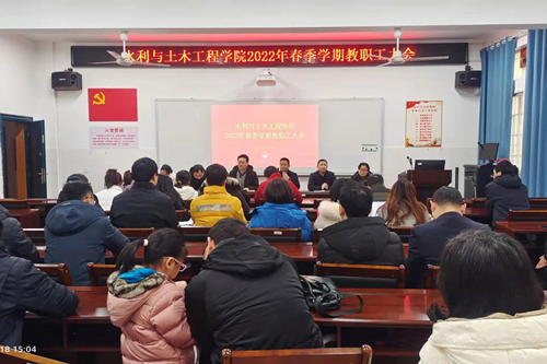 本网讯(水利与土木工程学院 翟光辉)2月18日上午,水利与土木工程学院在八教召开2022年春季学期教职工大会。会议由学院党委书记胡德勇主持,学院全体教职工参加。