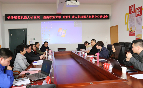 本网讯(机电工程学院 刘大为)2月25日下午,我校与长沙智能机器人研究院就联合打造农业机器人创新中心召开研讨会。副校长唐圣松,固高科技董事、副总裁吕恕出席,固高科技首席战略与财务顾问张翼、长沙智能机器人研究院总经理卢红波、运营总监任宏、服务中心主管刘俐汝,学校乡村振兴中心、机电学院相关负责人参加。机电工程学院党委书记谢倩主持会议。