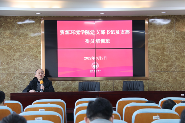 本网讯(资源环境学院 余展 李海霞)3月2日上午,资源环境学院党支部书记及支部委员培训班在第八教学楼正式开班。开班仪式由学院党委书记周江主持,学院全体党支部委员参加。