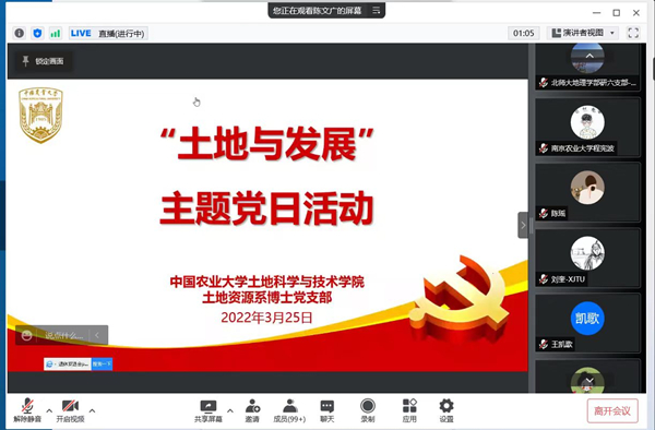资源环境学院研究生党支部组织参与“土地与发展”线上主题党日活动(图)