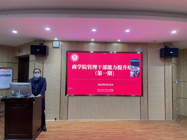 本网讯(商学院 石勇)3月31日,商学院2022年第一期管理干部能力提升培训在10教北102举行。学院党委副书记潘斌主持,学院领导班子成员、行政管理人员参加。