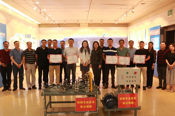 仪式上,卢颂等9名优秀校友表示从即日起,分批捐赠价值80万元的液压试验设备器材,用于学院液压技术实验室建设,首台液压教学实验平台已于今日捐赠到位。张立向优秀校友代表颁发了捐赠证书,学院领导介绍了实验室建设、学院校友工作情况,双方签订了捐赠协议,并就下一步校企合作进行深入座谈。