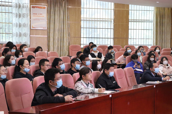 李阿利围绕“习近平总书记关于党章的重要论述、二十大党章修改的重要意义、二十大党章修改的基本内容、历届党章概述、如何学习贯彻党章”五个方面,全面阐述了为什么要学习党章,如何学习党章,怎样用党章思想指导学习工作三大问题,勉励同学们以高度的信念感、责任感、使命感,学习党章、遵守党章、贯彻党章、维护党章,在新征程中砥砺前行,让青春之花在不懈奋斗中绚丽绽放。