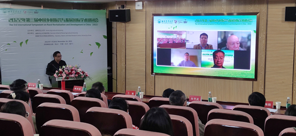 本网讯(商学院 田燕飞 刘玄亦)11月26日,由学校主办,商学院与约克大学BNV研究中心联合承办的第三届中国乡村振兴与发展国际学术研讨会在学校举行。本次研讨会基于社会科学的多学科视角,以习近平新时代中国特色社会主义思想为指导,以服务国家“三农”发展重大战略为导向,推动相关学科交叉与融合发展。本次研讨会设3场主旨演讲和5个分论坛针对相关问题开展研讨。