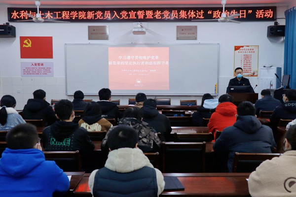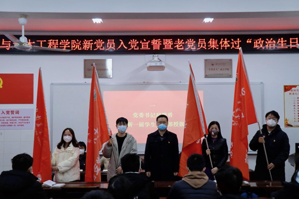 本网讯(水利与土木工程学院 邓澳)为进一步激发学生党员的荣誉感、责任感和使命感,12月15日上午,水利与土木工程学院在八教南216开展新党员入党宣誓暨老党员集体过“政治生日”活动。学院党委委员、党委秘书、各学生党支部书记,新发展学生党员及老学生党员代表参加活动。